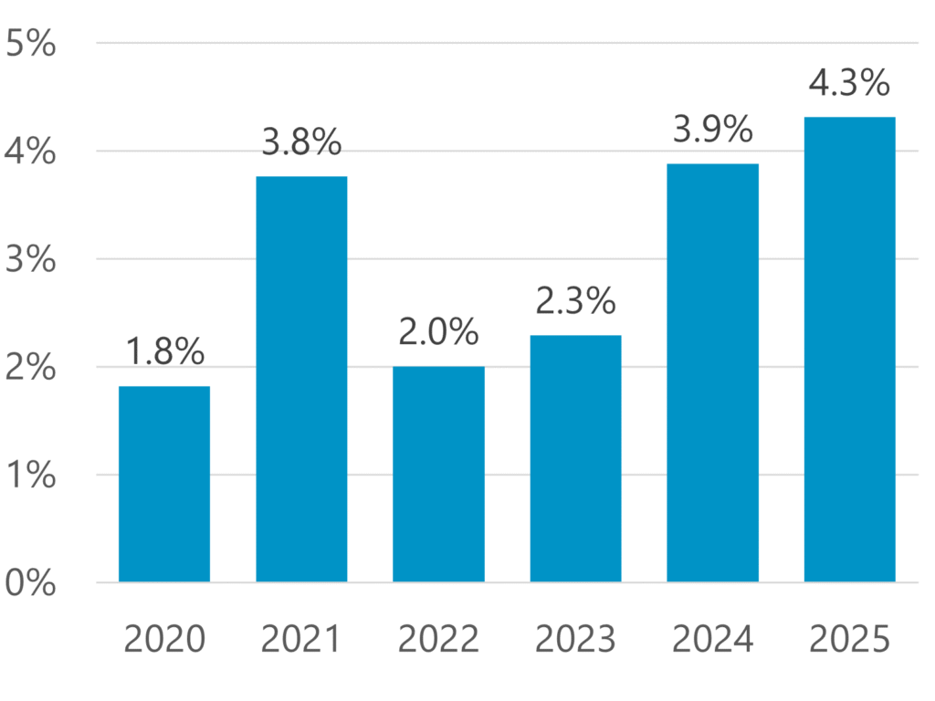 The situation regarding interest rates for employees is particularly positive: according to our projections*, employee assets earn an average interest rate of 4.3% for 2025. This is the highest rate for the last 25 years. Through interest, the insured benefit from returns on the capital markets, which in turn improves benefits and ultimately pensions.